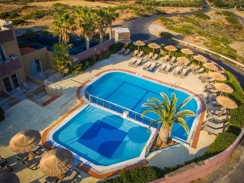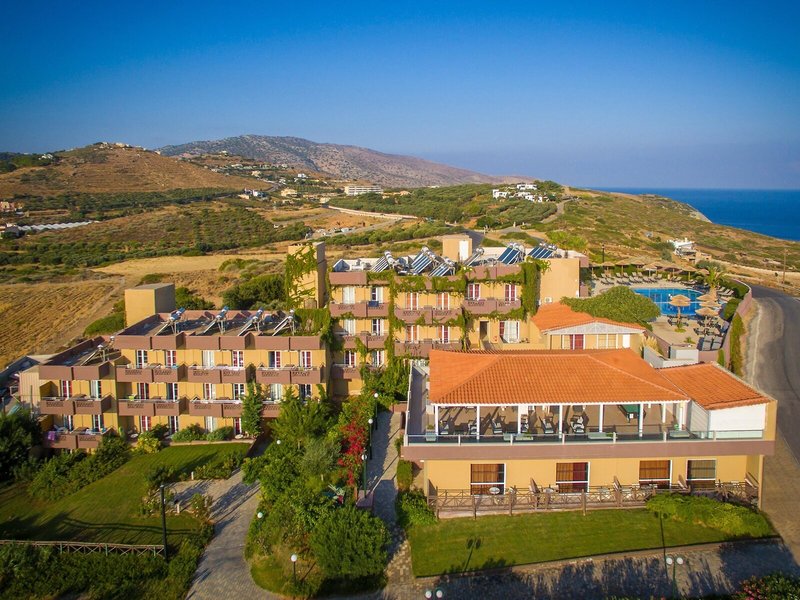 Poloha a okolie Rezort sa nachádza v pokojnom letovisku Agia Pelagia na severnom pobreží Kréty, nad zálivom Mononaftis, asi 22 km od hlavného mesta Heraklion. Niektoré typy izieb sa nachádzajú v prístavbe. Tie sú asi 50-250 m nad alebo pod hlavnou budovou. Vzhľadom na polohu na svahu a množstvo schodísk rezortu nie je vhodný pre hostí s obmedzenou pohyblivosťou a len čiastočne vhodný pre kočíky. Kyvadlová doprava minibusom z rezortu do zálivu Mononafitis v cene niekoľkokrát denne.