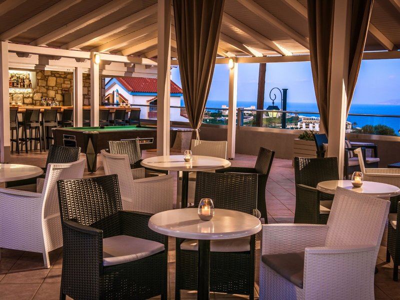 - Hlavná reštaurácia Amvrosia: Kuchyňa: grécka, medzinárodná, miestne špeciality; bezlepkové jedlá: na požiadanie, rezervácia nie je potrebná; bezlaktózové jedlá: na požiadanie, rezervácia nie je potrebná; vegetariánske jedlá: na požiadanie, rezervácia nie je potrebná; bufet: na požiadanie a rezervácia nie je potrebná, bez príplatku, zahrnuté v cene all inclusive, apríl - november, 7:00 - 10:00, 12:30 - 14:00 a 18:30 - 21:30, s terasou, k dispozícii je detská stolička, vyžaduje sa elegantný neformálny dress code.