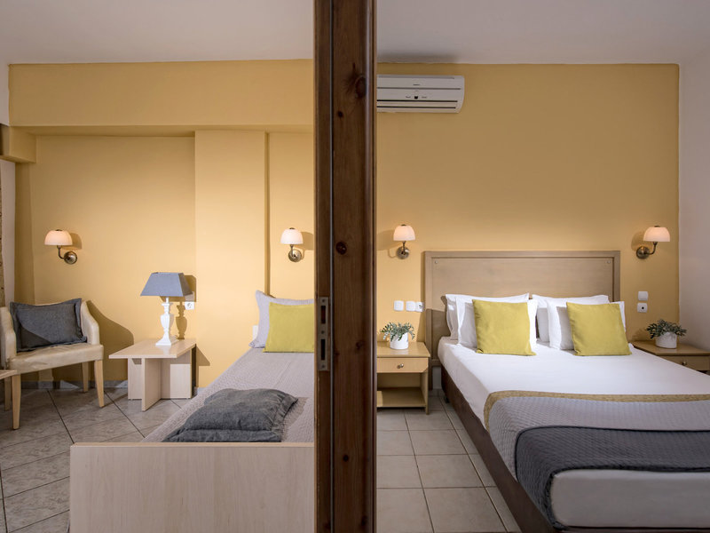 - Family mainbuilding Sea view (FZM1), Familienzimmer, Nichtraucherzimmer, im Hauptgebäude, Meerblick, Poolblick, ca. 30 m², Gesamtanzahl der Räume in diesem Zimmertyp: 2, Aufteilung wie folgt: bestehend aus 2 Zimmern, optisch getrennt durch Schiebetür, Babybett: ohne Gebühr, Anfrage notwendig, Klimaanlage: ohne Gebühr, Mai - Oktober, individuell regelbar, kalt, warm, Safe: gegen Gebühr, Kühlschrank: ohne Gebühr, bei All Inclusive inklusive, Telefon, Internet: WLAN/WiFi: ohne Gebühr, Fernseher: Flatscreen, Sat-TV, Roomservice: täglich 07:00 Uhr - 19:00 Uhr, gegen Gebühr, Reinigungsservice: täglich, ohne Gebühr, Dusche, WC, Föhn, Balkon oder Terrasse: mit Sitzgelegenheit
