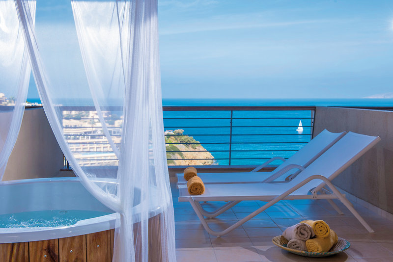 - 26-30 qm, Hauptgebäude, Meerblick, kombinierter Wohn-/Schlafraum, 1 Bad, Badewanne, WC, Bademantel, Badeslipper, Haartrockner, Klimaanlage, individuell regulierbar, Safe (kostenpflichtig), TV, Telefon, Kühlschrank, Balkon oder Terrasse (möbliert), Whirlpool, hochwertige Badartikel