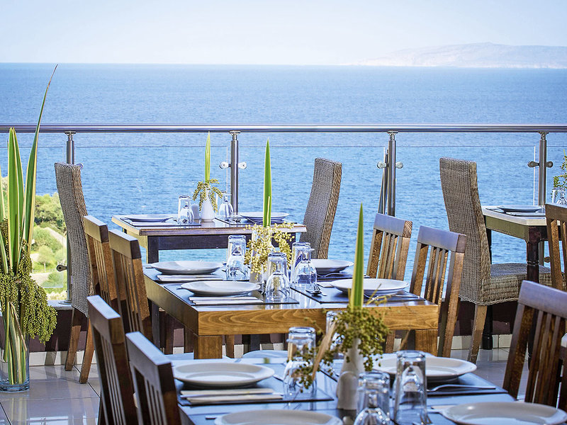 Vybavenie: Tento plne klimatizovaný rezort pozostáva z 5 budov (prístavby približne 50 – 250 m od hlavnej budovy). Priestranná vonkajšia plocha ponúka 4 bazény so slnečnými terasami, ležadlami a slnečníkmi (v cene pri bazéne, za poplatok na pláži; plážové osušky tiež za poplatok). Bary pri bazéne/snack bary ponúkajú čiastočne kryté posedenie. Rezort zahŕňa aj vstupnú halu s recepciou, posedenie, klimatizovanú reštauráciu, à la carte reštauráciu „Panorama“ s krásnou terasou s výhľadom na more a lobby bar s panoramatickým výhľadom. Oficiálne hodnotenie: 4 hviezdičky, 209 izieb, 2 – 4 poschodia, výťah v hlavnej budove.
