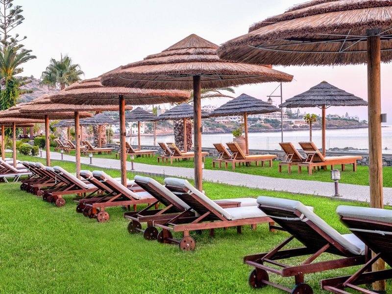 - Strand „BLUE SEA BEACH“: Sand, Liegestühle: gegen Gebühr, bei All Inclusive inklusive, Sonnenschirme: gegen Gebühr, bei All Inclusive inklusive