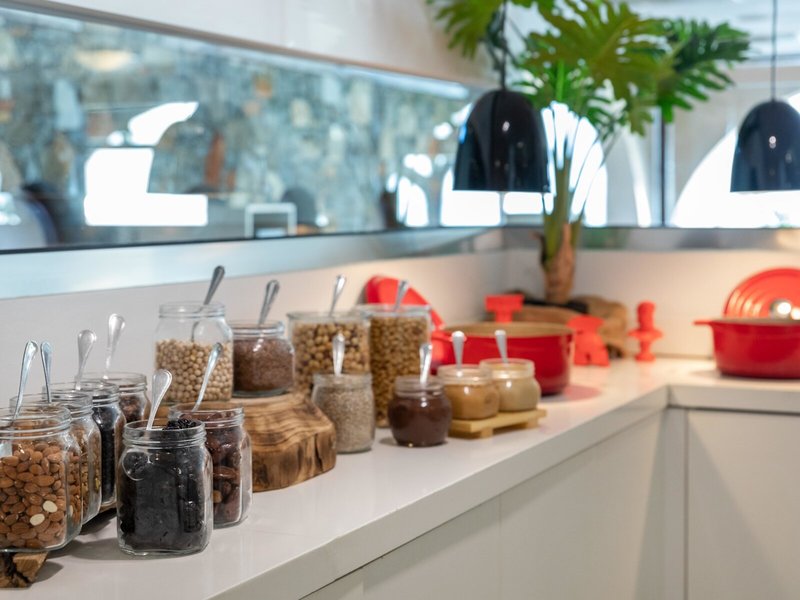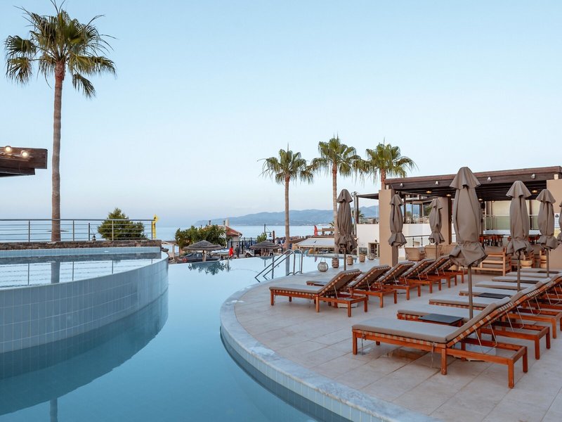 - Reštaurácia Hlavná reštaurácia: Kuchyňa: grécka, medzinárodná, detská strava: bez poplatku, na vyžiadanie, bezlepkové jedlá: bez poplatku, na vyžiadanie nutné, bezlaktózové jedlá: bez poplatku, na vyžiadanie nutné, vegetariánske jedlá: bez poplatku, na vyžiadanie nutné, vegánske jedlá: bez poplatku, nutná žiadosť, bufet, show cooking, klimatizované, s terasou, vysoká stolička, vhodné oblečenie
