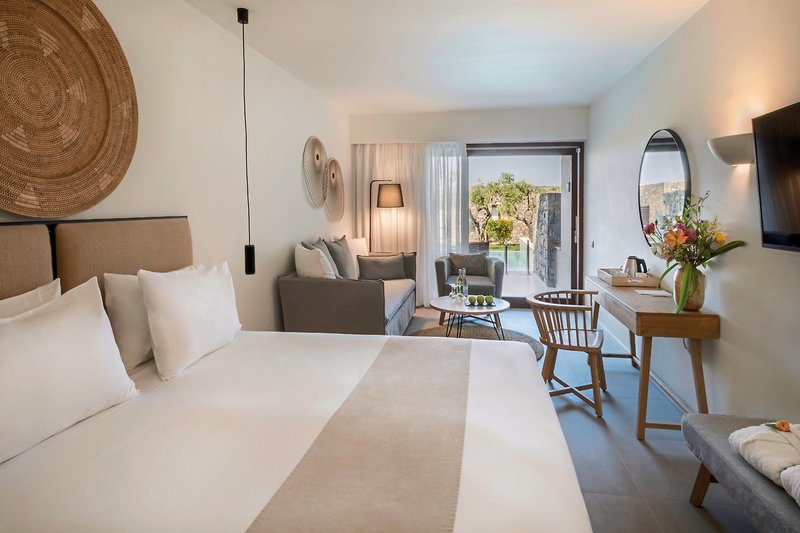 - 26-30 qm, Juniorsuite, Premium, Meerblick, kombinierter Wohn-/Schlafraum, 1 Bad, Dusche, WC, Bademantel, Badeslipper, Haartrockner, Klimaanlage, individuell regulierbar, Safe, 1 TV (Sat-TV), Kaffee/Tee, Kühlschrank, Terrasse (möbliert), direkter Poolzugang, Privatpool, bei Ankunft im Zimmer Obstkorb, Wein, Wasser