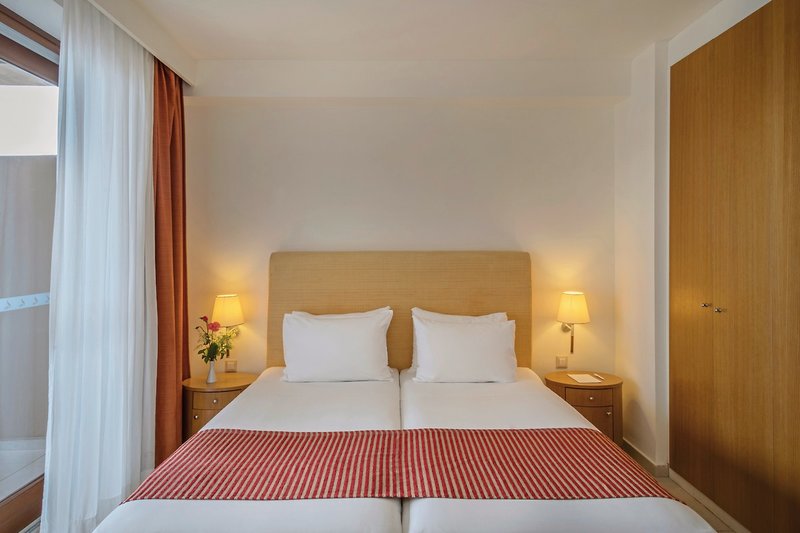 - 26-30 m², Junior Suite, Premium, výhľad na more, kombinovaná obývacia/spacia časť, 1 kúpeľňa, sprchovací kút, WC, župan, papuče, sušič vlasov, individuálne ovládaná klimatizácia, trezor, 1 TV (satelitná TV), káva/čaj, chladnička, zariadený balkón, košík s ovocím, víno a voda pri príchode