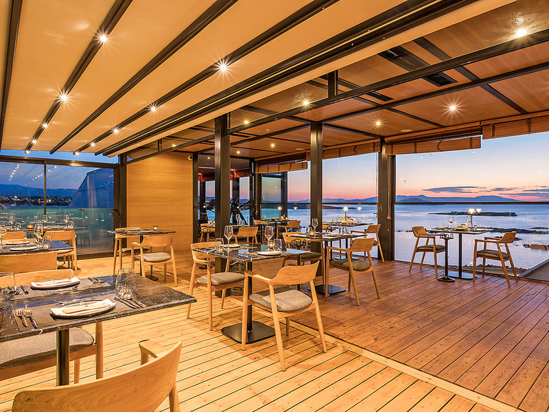 Ausstattung: Kleines, luxuriöses Erwachsenen-orientiertes Boutique Hotel, Sitz- und Sonnenterrasse im obersten Stock, Strand mit kostenlosen Liegestühlen, Empfangsbereich mit Rezeption, WLAN, Lobbybar, Parkplatzservice, Gepäckraum. Restaurant, Á-la-carte Restaurant im obersten Stock mit Panorama-Ausblick. Landeskategorie: 5 Sterne, 34 Zimmer.