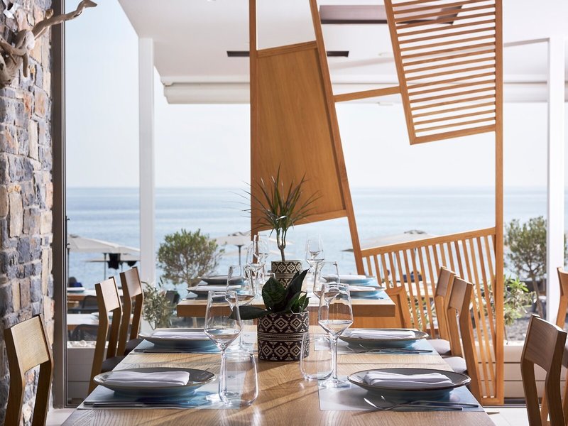 - Spezialitätenrestaurant „Pelagos SeaSide Restaurant“: Küche: griechisch, landestypisch, mediterran, Diätküche: gegen Gebühr, leichte Gerichte: gegen Gebühr, vegetarische Gerichte: gegen Gebühr, à la carte, Reservierung notwendig, gegen Gebühr, Barzahlung, Januar - Dezember, täglich, 09:00 Uhr - 00:00 Uhr, klimatisierbar, am Strand, angemessene Kleidung erwünscht