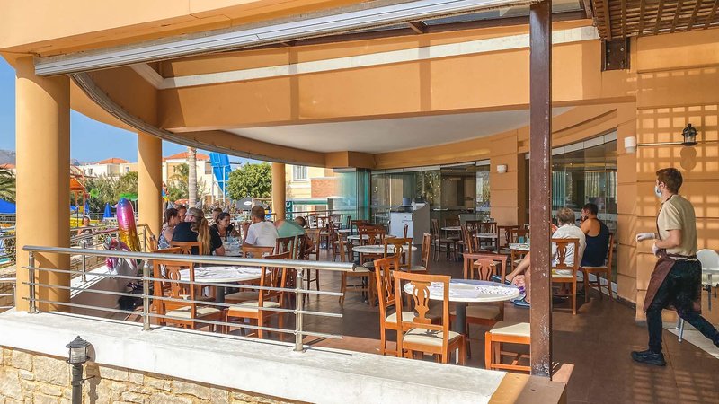 All Inclusive: Raňajky 7:00 – 10:00, neskoré raňajky 10:00 – 10:30, obed 12:30 – 15:00, večera s prípravou jedla pred očami 18:30 – 21:30, každá formou bufetu v hlavnej reštaurácii so samostatným detským bufetom. Počas týždňa sú k dispozícii dva tematické bufety (grécky, ázijský, mexický). Hostia si môžu raz za pobyt vybrať stravovanie à la carte v reštaurácii „Kipos“ (18:30 – 21:30, rezervácia nutná do 20:00 deň vopred). Nápoje ako voda, nealkoholické nápoje, džúsy, čapované pivo a miestne víno sú zahrnuté v cene, ako aj občerstvenie ako sendviče, jednohubky, dezerty, koláče a ovocie od 10:00 do 18:00. Na požiadanie je k dispozícii aj výber miestnych alkoholických nápojov (deň vopred do 18:00, k dispozícii pre výlety). Na večeru sú k dispozícii vegetariánske a diétne jedlá.