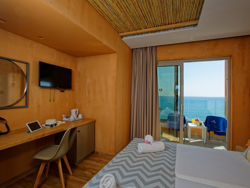 • Dvojlôžková izba Superior s výhľadom na more (DZM2), dvojlôžková izba, v hlavnej budove, morská strana, výhľad na more, celkový počet izieb v tomto type izby: 1, rozloženie: 1 spálňa, klimatizácia: zadarmo, individuálne nastaviteľná, studená , teplá, podlaha: dlažba, trezor: za poplatok, chladnička: bez poplatku, rýchlovarná kanvica, telefón, Internet: WLAN/WiFi, TV: plochá obrazovka, satelitná TV, izbová služba, vaňa alebo sprcha, WC, župan: bez poplatku , papuče: bez poplatku, sušič vlasov, kozmetické zrkadlo, balkón alebo terasa