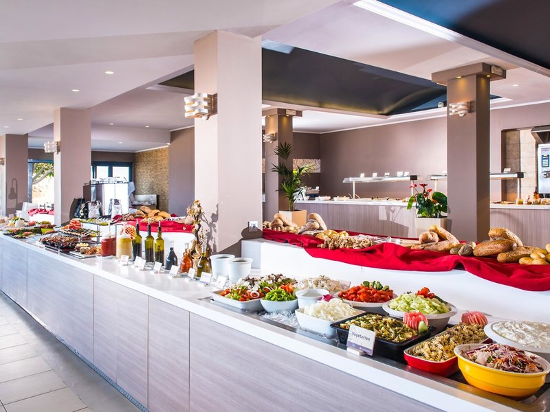 - Hlavná reštaurácia Corissia Park restaurant: od 0 rokov, kuchyňa: grécka, medzinárodná, stredomorská, regionálna, grilované jedlá, bezlepkové jedlá: bez poplatku, vyžiadanie a rezervácia nie je nutná, bezlaktózové jedlá, vegetariánske jedlá, vegánske jedlá, bufet, show cooking, nie je nutná požiadavka a rezervácia, bez poplatku, sezónne, denne 7:30 - 22:00, s terasou, na pláži, pri bazéne, priestor pre fajčiarov, vysoká stolička, vhodné oblečenie