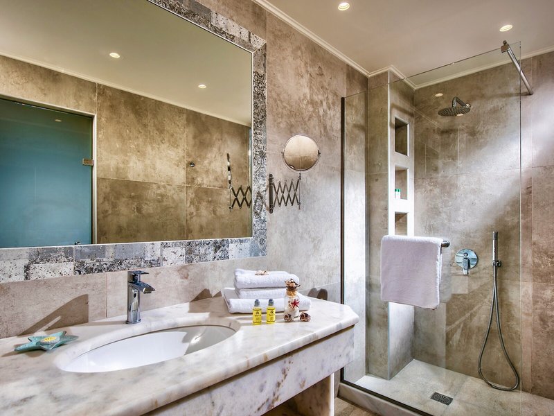 Vaše ubytovanie: Izby sú vybavené klimatizáciou a kúrením. Hostia si môžu oddýchnuť a vychutnať si výhľad na more na balkóne alebo súkromnej terase väčšiny izieb. Izby majú manželskú posteľ a rozkladaciu pohovku. Prístelky je možné vyžiadať. K dispozícii je aj trezor, minibar a písací stôl. Kuchynka je dobre vybavená na vlastné varenie a má chladničku, sporák, zariadenie na prípravu čaju/kávy a rúru. Pre väčšie pohodlie hostí je k dispozícii žehliaca súprava. K dispozícii je tiež telefón, televízor, CD prehrávač, DVD prehrávač a Wi-Fi pripojenie na internet (bezplatné). K vybaveniu izby patria papuče. Kúpeľňa je vybavená sprchovacím kútom a vaňou a obsahuje sušič vlasov. Kozmetické produkty poskytujú v kúpeľniach extra pohodlie. Hotel ponúka rodinné a nefajčiarske izby.