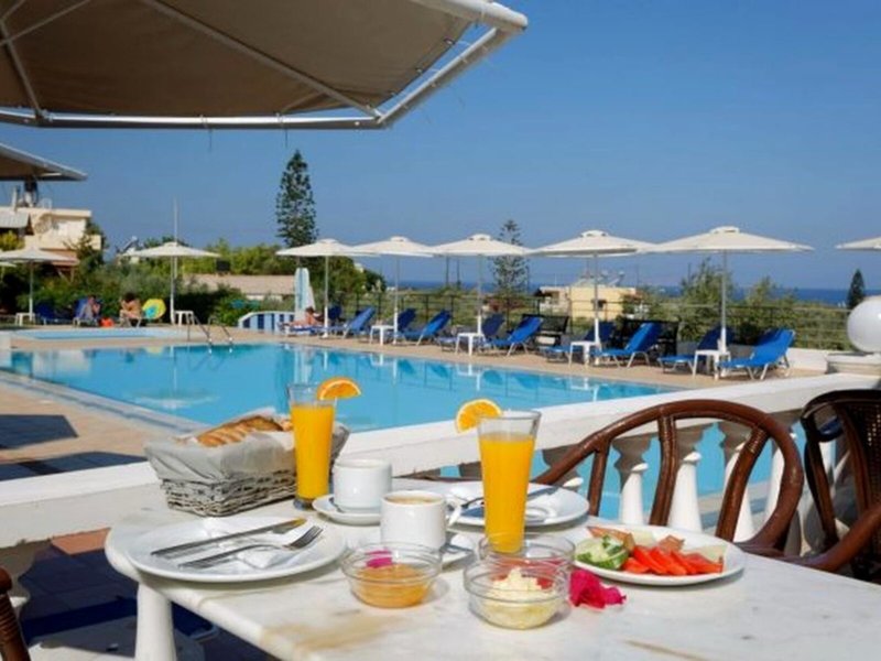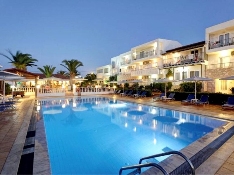 Poloha a okolie Hotel sa nachádza v pokojnej dedinke Anissaras na krásnom severnom pobreží Kréty, obklopený krásnou záhradou, len pár minút od pláže. Vďaka mierne vyvýšenej polohe ponúka skvelý výhľad na večnú modrú Krétskeho mora. Do Hersonissosu je to asi 2 km. Letisko Hersonissos je vzdialené približne 24 km.