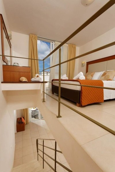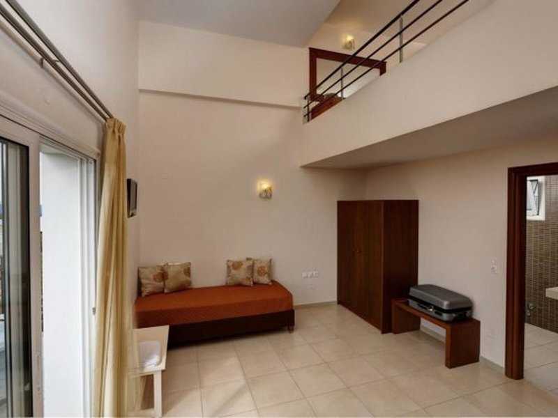 - Open Plan Maisonette (DZX5), Maisonette, Mindestalter im Zimmer: 13 Jahre, Neubau, Meerblick, seitlicher Meerblick, ca. 28 m², letzte Komplettrenovierung 2018, Gesamtanzahl der Räume in diesem Zimmertyp: 1, Aufteilung wie folgt: kombiniertes Wohn-/Schlafzimmer, Maisonette, 1 Schlafzimmer, 2 Einzelbetten (80x200cm), 1 Doppelbett (150x200cm), Klimaanlage: individuell regelbar, Fußboden: Fliesenboden, Sofa, Kühlschrank, Fernseher: Flatscreen, im Wohnbereich, Reinigungsservice: Mo. - Sa., Dusche, WC, Föhn, Balkon: mit Sitzgelegenheit, Balkon oder Terrasse: mit Sitzgelegenheit, Terrasse: mit Sitzgelegenheit