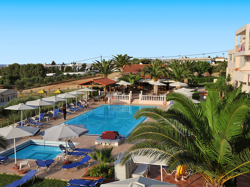 Poloha: Nachádza sa na pokojnom mieste v Anissarase. Piesočnatá pláž (zmiešaná s jemnými kamienkami) je vzdialená približne 700 metrov. V bezprostrednej blízkosti sa nachádzajú nákupné a zábavné možnosti, reštaurácie, bary a taverny. Chersonissos je vzdialený približne 5 kilometrov. Letisko Heraklion je vzdialené približne 24 kilometrov.