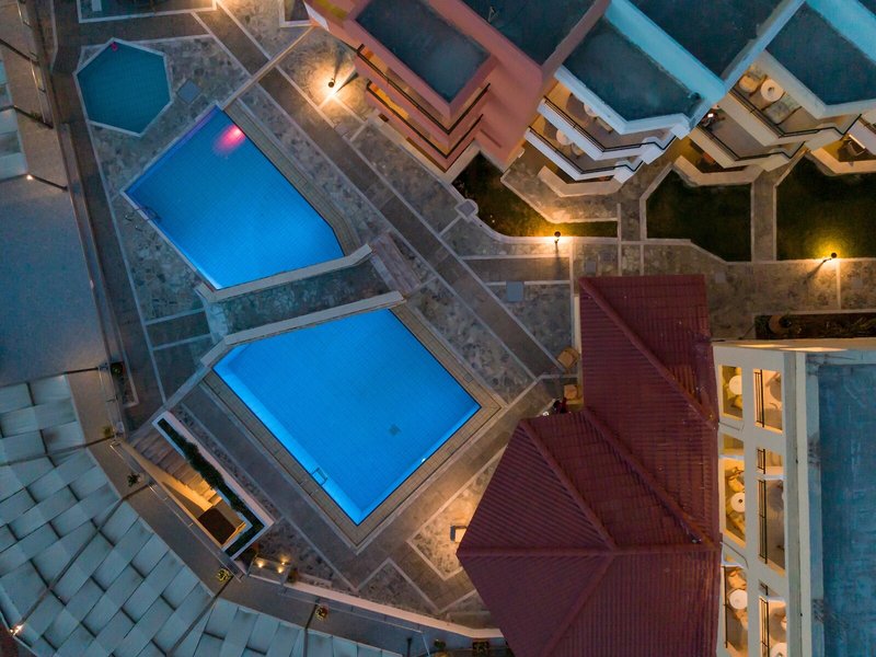 Šport & Fitness: Vonkajší bazén s detskou časťou je ideálny pre aktívny oddych a pravidelný aqua tréning. Dovolenku si môžete užiť na slnečnej terase s ležadlami a slnečníkmi. V bare pri bazéne na hostí čakajú rôzne osviežujúce nápoje. Pre tých, ktorí sa cítia aktívne, je k dispozícii cyklistika/horská cyklistika, plážový volejbal a volejbal. Pre nadšencov vodných športov je v ponuke potápanie. Hostia si môžu vychutnať širokú škálu indoorových športov, vrátane posilňovne, stolného tenisu, biliardu, šípok a gymnastiky. Vo wellness centre sú k dispozícii kúpeľné a masážne procedúry.