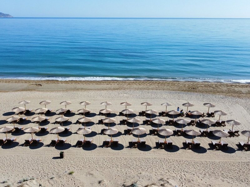 - Pláž Kavros: piesková, verejná, ležadlá: za poplatok, slnečníky: za poplatok