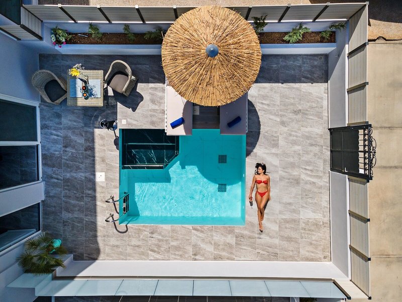 - Superior Aqua Suite with pool (SUX1), Suite, Nichtraucherzimmer, Parkseite, Straßenseite, Poolblick, Gartenblick, ca. 40 m², letzte Komplettrenovierung 2021, Gesamtanzahl der Räume in diesem Zimmertyp: 1, Aufteilung wie folgt: kombiniertes Wohn-/Schlafzimmer, optisch abgetrenntes Kinderzimmer, 2 Doppelbetten, 1 King Size Bett, Babybett: ohne Gebühr, Anfrage nicht notwendig, Klimaanlage: ohne Gebühr, individuell regelbar, kalt, warm, Fußboden: Fliesenboden, Safe: ohne Gebühr, Sofa, Bügelbrett, Waschmaschine, Kühlschrank, Espressomaschine, Kaffee-/Teezubereiter, Wasserkocher, Minibar: gegen Gebühr, Minibarauffüllung, Internet: WLAN/WiFi: ohne Gebühr, Fernseher: Flatscreen, im Wohnbereich, im Schlafzimmer, deutsches Programm, Sat-TV, Reinigungsservice, Dusche, Regendusche, Bademantel: ohne Gebühr, Slipper: ohne Gebühr, Föhn, Terrasse: mit Liegestühlen, mit Liegen, mit Whirlpool, mit Private Pool, mit Privat-Garten