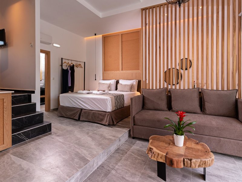 - Junior Suite (JSX1), Juniorsuite, Nichtraucherzimmer, Gartenseite, Straßenseite, Bergblick, Gartenblick, Blick auf mountain (Lefka Ori), ca. 36 m², letzte Teilrenovierung 2021, Gesamtanzahl der Räume in diesem Zimmertyp: 1, Aufteilung wie folgt: Wohnzimmer, 1 Schlafzimmer, 2 Einzelbetten, 1 Doppelbett (160cm), 1 Schlafsofa (70x190cm), Babybett: ohne Gebühr, Anfrage nicht notwendig, Moskitonetz, Klimaanlage: ohne Gebühr, individuell regelbar, kalt, warm, Fußboden: Fliesenboden, Safe: gegen Gebühr, Sofa, Kühlschrank: ohne Gebühr, Kaffee-/Teezubereiter, Wasserkocher, Esstisch, Minibar: gegen Gebühr, Minibarauffüllung, Telefon, Internet: WLAN/WiFi, Fernseher: Flatscreen, im Wohnbereich, deutsches Programm, Sat-TV, Reinigungsservice, Badewanne oder Dusche, WC, Bademantel: ohne Gebühr, Slipper: ohne Gebühr, Föhn, Balkon oder Terrasse: mit Sitzgelegenheit