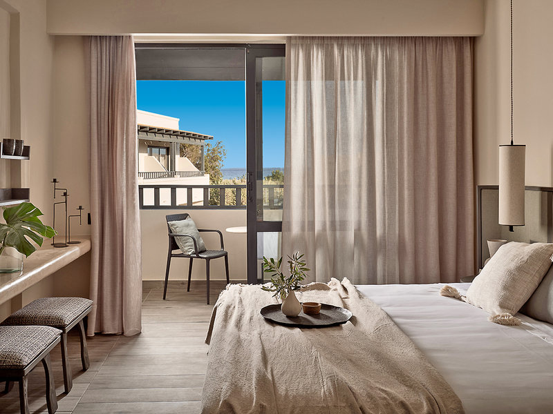Ubytovanie: Dvojlôžková izba Aterre-Retreat (DA, cca 20 m²), klimatizácia, minibar (za poplatok), kávovar/čajník, TV, Wi-Fi, trezor, telefón. Sprcha, WC, župany, papuče, fén. Balkón alebo terasa s výhľadom do záhrady. Max. 2 dospelí. Možnosť rezervácie pre jednu osobu (DAE) alebo s terasou (DZA).