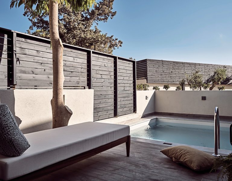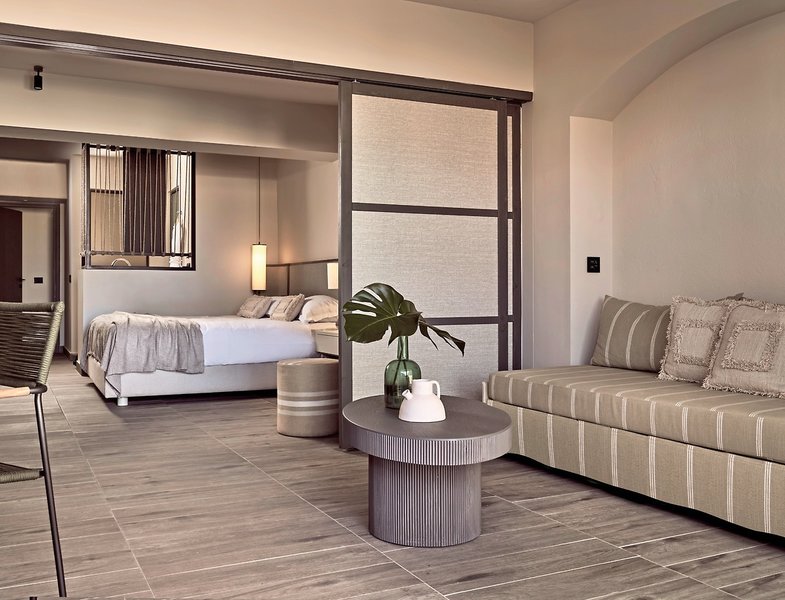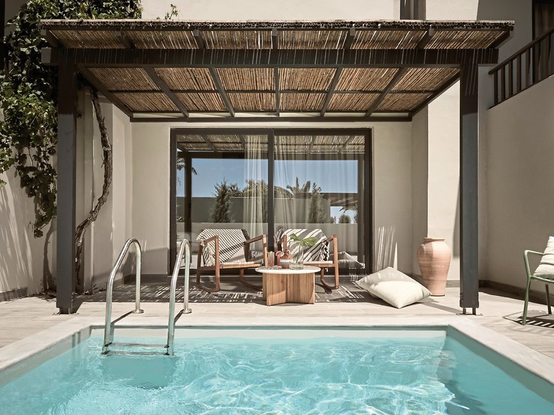 - Juniorsuite, Superior, Gartenblick, 1 separater Wohnraum, Sitzecke, Schreibtisch, Doppelbett, 1 Bad, Dusche, WC, Bademantel, Badeslipper, Haartrockner, Kosmetikspiegel, Klimaanlage, Heizung, Minibar kostenpflichtig, Safe, Bügelbrett, Bügeleisen, TV (Sat-TV, Flachbildschirm), Musikanlage, WLAN, Kaffeemaschine, Kaffee/Tee, Terrasse (möbliert), direkter Poolzugang, Privatpool, bei Ankunft im Zimmer Obstkorb, Wein