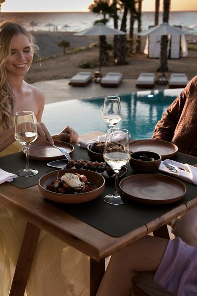 - Hlavná reštaurácia ELIA: Kuchyňa: Grécka, Medzinárodná, Talianska, Miestna, Stredomorská, Regionálna, Ryby/Morské plody, Grilované jedlá, Biopotraviny, Bezlepkové jedlá, Ľahké jedlá, Sezónne jedlá, Vegetariánske jedlá, Vegánske jedlá, Celé potraviny, Bufet, Show Cooking