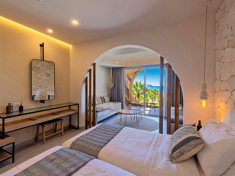 Superior-Doppelzimmer (DZM, ca. 26-30 qm), Klimaanlage, Minikühlschrank, Tee- und Kaffeezubereiter, TV, Telefon, Safe. Dusche, WC, Bademäntel, Slipper, Föhn. Balkon/Terrasse, in 1. Strandreihe mit Meerblick. Max. 2E+2K