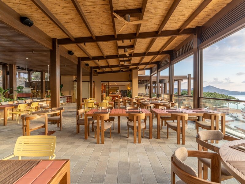 - Hlavná reštaurácia Calydon: Kuchyňa: grécka, medzinárodná, stredomorská, grilované jedlá, bezlepkové jedlá, bufet, za príplatok, klimatizovaná, s terasou, fajčiarska zóna, detská stolička
