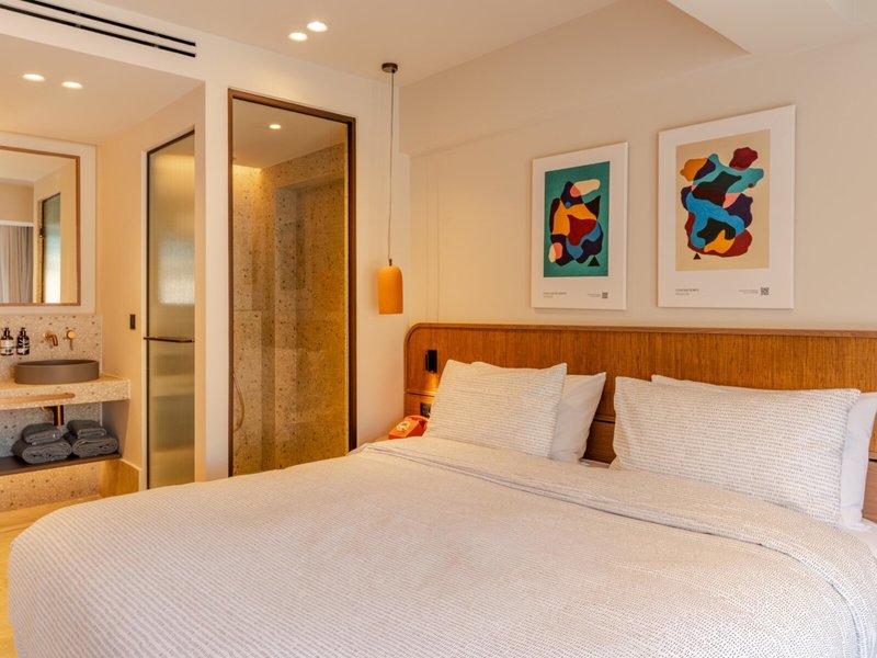 - Innside Room (DZX1), Doppelzimmer, Landblick, ca. 22 - 29 m², letzte Komplettrenovierung 2025, Gesamtanzahl der Räume in diesem Zimmertyp: 1, Aufteilung wie folgt: 1 Schlafzimmer, 1 King Size Bett (200x200cm), Klimaanlage: ohne Gebühr, individuell regelbar, kalt, warm, Heizung: individuell regelbar, Fußboden: Fliesenboden, Safe: ohne Gebühr, Deckenventilator, Schreibtisch, Nespressomaschine, Kaffee-/Teezubereiter, Minibar: ohne Gebühr, Wasser: ohne Gebühr, Telefon, Internet: WLAN/WiFi: ohne Gebühr, Fernseher: Flatscreen, im Schlafzimmer, Sat-TV, Roomservice: gegen Gebühr, Dusche, separates WC, Bademantel, Slipper, Föhn, Balkon oder Terrasse: mit Sitzgelegenheit