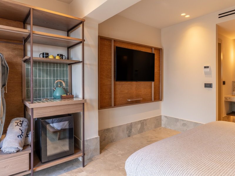 - Loft with Plunge Pool (DZX2), Dreibettzimmer, Meerseite, Landblick, ca. 30 - 36 m², letzte Komplettrenovierung 2025, Gesamtanzahl der Räume in diesem Zimmertyp: 1, Aufteilung wie folgt: kombiniertes Wohn-/Schlafzimmer, 1 King Size Bett (200x200cm), 1 Schlafsofa (100x200cm), Klimaanlage: ohne Gebühr, individuell regelbar, kalt, warm, Heizung: individuell regelbar, Fußboden: Fliesenboden, Safe: ohne Gebühr, Deckenventilator, Sofa, Schreibtisch, Bügeleisen, Nespressomaschine, Kaffee-/Teezubereiter, Minibar: ohne Gebühr, Softdrinks: ohne Gebühr, Minibarauffüllung, Telefon, Fernseher: Flatscreen, im Schlafzimmer, Sat-TV, Dusche, Regendusche, separates WC, Bademantel: ohne Gebühr, Slipper: ohne Gebühr, Föhn, Terrasse: mit Liegestühlen, mit Sitzgelegenheit, mit Plunge Pool
