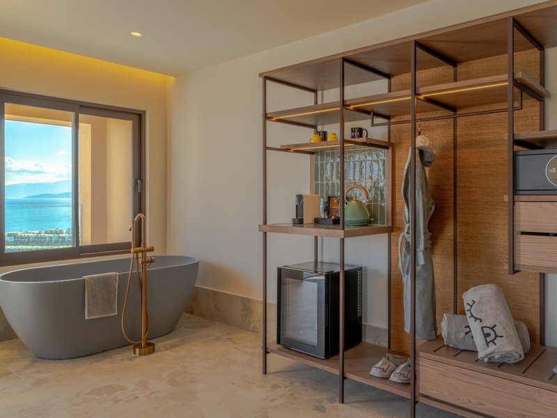- Loft s ponorným bazénom a výhľadom na more (DZM2), trojlôžková izba, orientovaný smerom k moru, výhľad na more, cca 30-36 m², posledná kompletná rekonštrukcia 2025, celkový počet izieb tohto typu: 1, dispozícia: kombinovaná obývacia izba/spálňa, 1 manželská posteľ (200x200cm), 1 rozkladacia pohovka (100x200cm), klimatizácia: zadarmo, individuálne ovládaná, chladenie, teplo, kúrenie: individuálne ovládané, podlaha: dlažba, trezor: zadarmo, stropný ventilátor, pohovka, písací stôl, žehlička, kávovar Nespresso, kávovar/čajník, minibar: zadarmo, nealkoholické nápoje: zadarmo, dopĺňanie minibaru, telefón, TV: plochá obrazovka, v spálni, satelitná TV, sprcha, dažďová sprcha, samostatné WC, župan: zadarmo, papuče: zadarmo, fén, terasa: s ležadlami, s posedením, s ponorným bazénom