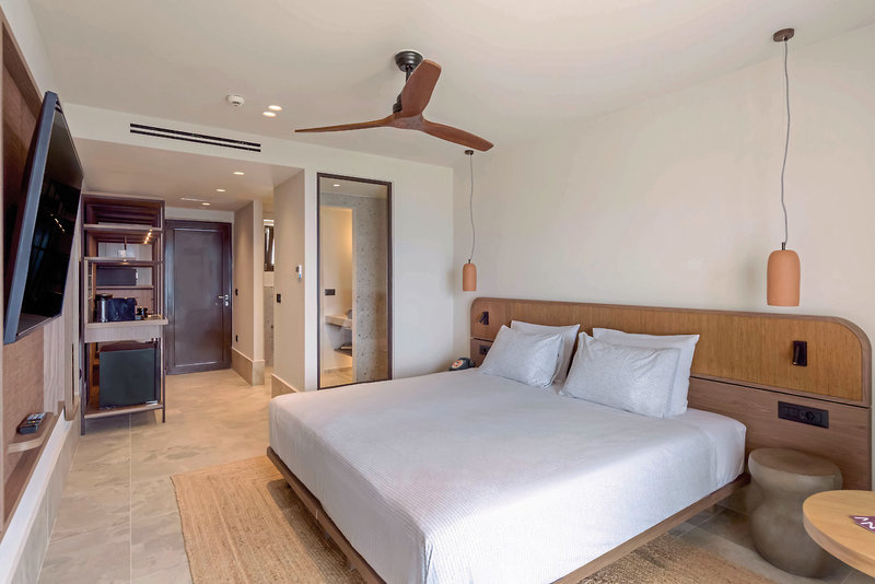 - 31-35 qm, Doppel, Superior, Meerblick, Sofabett, Regendusche, Bademantel, Badeslipper, Haartrockner, Klimaanlage, Minibar, Auffüllung täglich, Safe, Bügeleisen, Yogamatte, TV (Sat-TV, Smart-TV), Espressomaschine, Balkon oder Terrasse, Kopfkissen-Menü, hochwertige Badartikel, bei Ankunft im Zimmer Wasser