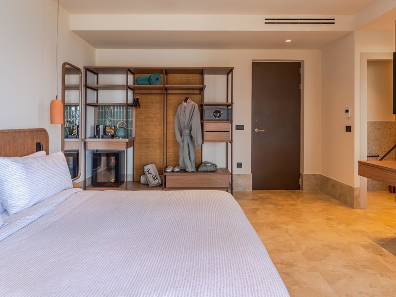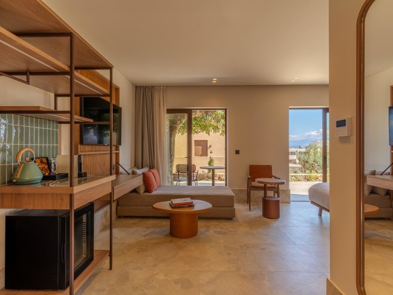 - Loft with Plunge Pool (DZX2), Dreibettzimmer, Meerseite, Landblick, ca. 30 - 36 m², letzte Komplettrenovierung 2025, Gesamtanzahl der Räume in diesem Zimmertyp: 1, Aufteilung wie folgt: kombiniertes Wohn-/Schlafzimmer, 1 King Size Bett (200x200cm), 1 Schlafsofa (100x200cm), Klimaanlage: ohne Gebühr, individuell regelbar, kalt, warm, Heizung: individuell regelbar, Fußboden: Fliesenboden, Safe: ohne Gebühr, Deckenventilator, Sofa, Schreibtisch, Bügeleisen, Nespressomaschine, Kaffee-/Teezubereiter, Minibar: ohne Gebühr, Softdrinks: ohne Gebühr, Minibarauffüllung, Telefon, Fernseher: Flatscreen, im Schlafzimmer, Sat-TV, Dusche, Regendusche, separates WC, Bademantel: ohne Gebühr, Slipper: ohne Gebühr, Föhn, Terrasse: mit Liegestühlen, mit Sitzgelegenheit, mit Plunge Pool
