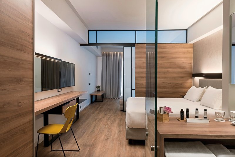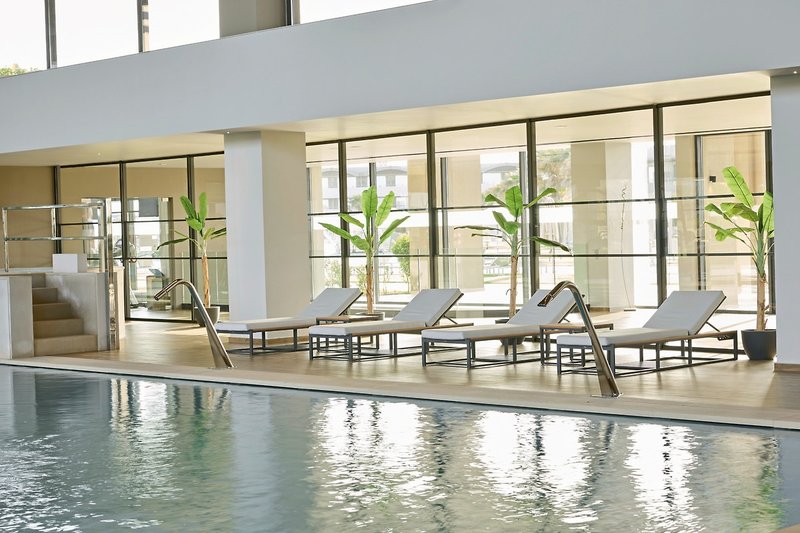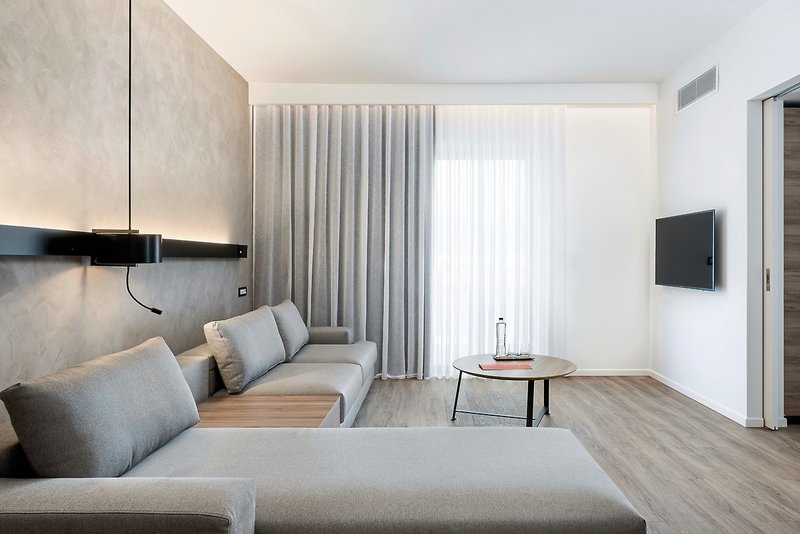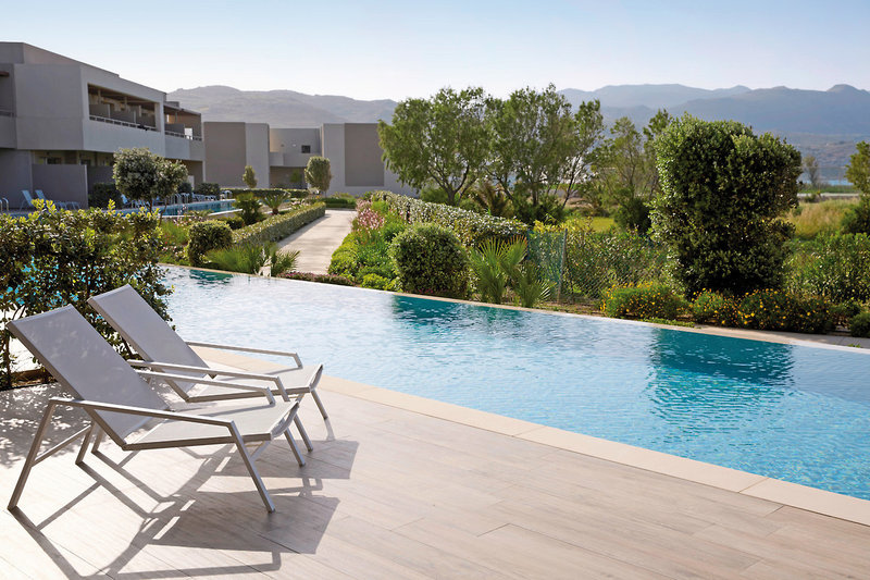 - 36-40 qm, Juniorsuite, optisch getrennter Wohn-/Schlafraum (mit Schiebetür), 1 Doppelbett, 2 Sofabetten, Dusche, Bademantel, Badeslipper, Haartrockner, Klimaanlage, individuell regulierbar, Minibar, Auffüllung regelmäßig, 1xwöchentlich, Softdrinks, Säfte, Wasser, Safe, TV (Sat-TV), Kaffee/Tee, Terrasse (möbliert), direkter Poolzugang, Gemeinschaftspool, late check-out (nach Verfügbarkeit), hochwertige Badartikel, Aufdeck-Service, VIP-Frühstücksbuffet im Restaurant, „Kouzina“, 4 A-la-carte-Abendessen pro Woche (das 4. A-la-carte-Abendessen nur im Seafood Restaurant „Psari“ möglich), tägliche Auffüllung der Espresso-Kapseln, kostenloser Fahrradverleih (1xpro Aufenthalt/verfügbar an bestimmten Tagen, vorherige Reservierung erforderlich)