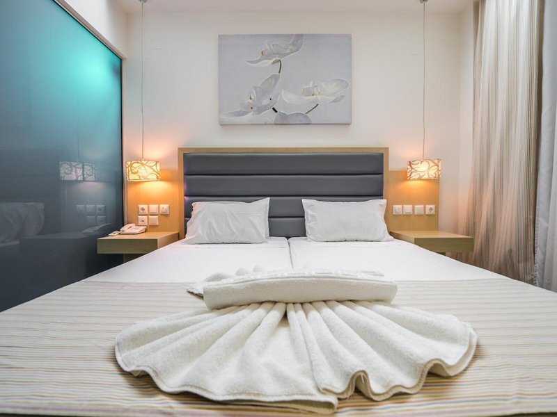 Ubytovanie: Izby sú vybavené klimatizáciou a ventilátorom. Vo väčšine ubytovacích jednotiek si hostia môžu vychutnať výhľad na more zo svojho balkóna alebo terasy. Izby majú manželskú posteľ a rozkladaciu pohovku. K dispozícii sú samostatné spálne. Prístelky je možné vyžiadať. Najlepšou ochranou vecí hostí je trezor. K dispozícii je aj chladnička, minichladnička a príslušenstvo na prípravu čaju/kávy. Pre väčšie pohodlie hostí je k dispozícii súprava na žehlenie. K dispozícii je tiež telefón, TV, rádio a WiFi (zdarma). K vybaveniu izieb patria papuče. V kúpeľni so sprchovacím kútom a vaňou máte k dispozícii sušič vlasov a župany. Hotel ponúka rodinné a nefajčiarske izby.