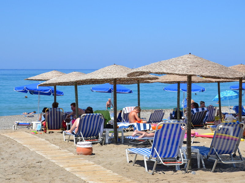 - Strand „RETHYMNO BEACH“: Sand, feinsandig, felsig, Kies, naturbelassen, Strandlänge: ca. 15 km, öffentlich mit eigenem Hotelabschnitt, Liegestühle: gegen Gebühr, Sonnenschirme: gegen Gebühr, Barzahlung
