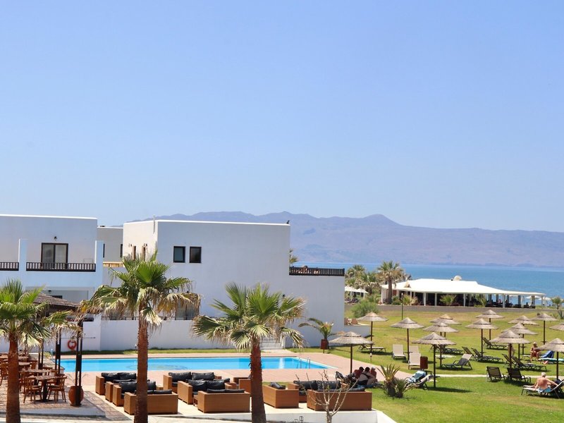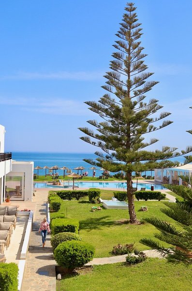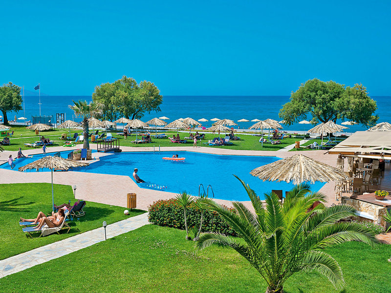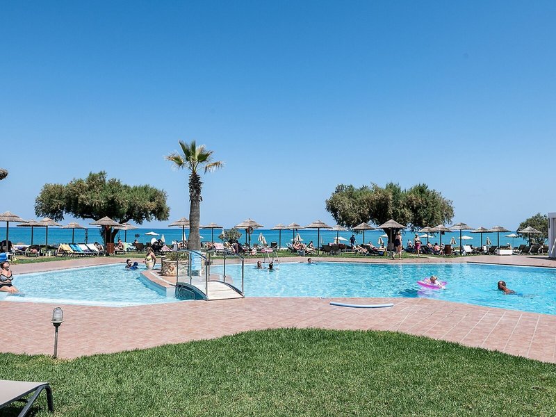 Poloha a okolie Nachádza sa priamo na dlhej, mierne sa zvažujúcej pláži Platanias, ktorá bola ocenená Modrou vlajkou. Do rušného centra Chanie je to cca 12 km. Čas presunu do Chanie asi 50 minút; Čas presunu do Heraklionu cca 3 - 3,5 hodiny