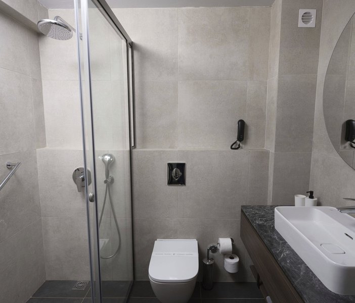 Mit King-Size-Bett oder Doppelbett, 1 Extrabett (Klappbett), Sofabett als Extrabett, Babybett (kostenlos), gefliestem Boden, Kitchenette, Wasserkocher (ggf. geg. Gebühr), Balkon oder Terrasse und Flatscreen-Sat-TV sowie zentral gesteuerter Klimaanlage. Badezimmer mit Dusche (Größe: 50 m²). Handtücher werden 3x pro Woche gewechselt.