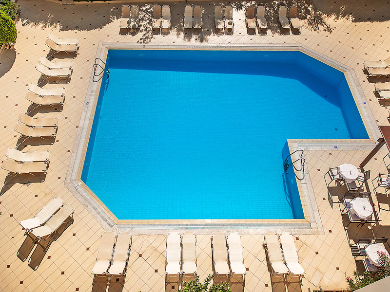 Ausstattung: Bei vielen Stammgästen beliebtes Hotel. Im Garten 2 schöne Süßwasserswimmingpools, Sonnenterrassen mit Liegen und Schirmen am Pool (am Strand geg. Geb.), Pool-/Snackbar mit Sitzterrasse. Rezeption, WLAN, Bar-/Aufenthaltsraum, TV (dt. Programme). Restaurant mit Terrasse. Hallenbad (Vor-/Nachsaison). Landeskat.: 5 Sterne, 147 Zimmer, 4 Etagen, 3 Lifte.