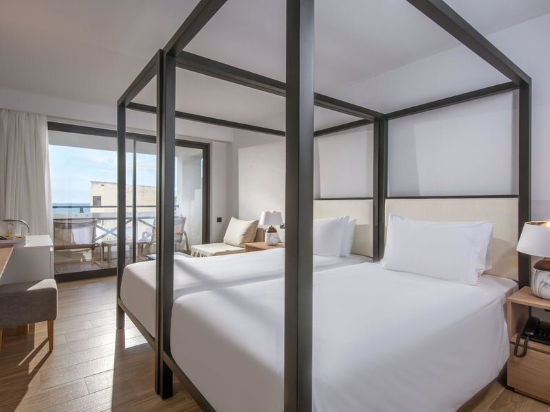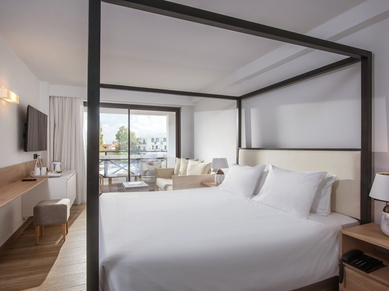 - Dvojlôžková izba s bočným výhľadom na more (DZX2), dvojlôžková izba, v hlavnej budove, bočný výhľad na more, cca 22 m², posledná kompletná rekonštrukcia v roku 2022, celkový počet izieb v tomto type izby: 1, rozloženie: 1 spálňa, dieťa. posteľ: bez poplatku, klimatizácia: bez poplatku, individuálne nastaviteľná, centrálne ovládaná, studená, teplá, podlaha: dlažba, trezor: za poplatok, písací stôl, chladnička: bez poplatku, rýchlovarná kanvica, telefón, Internet: WLAN/WiFi: nie poplatok, TV: plochá obrazovka, v spálni, nemecký program, Satelitná TV, izbová služba: denne 7:30 - 21:30, za poplatok, upratovanie: zdarma, sprcha, WC, fén, balkón: s posedením