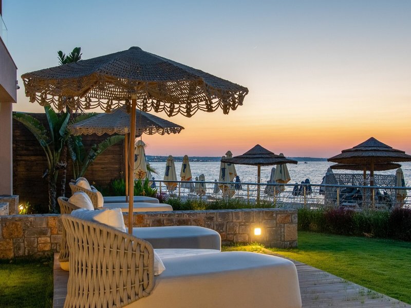 - Pláž Klotzani Pláž: piesok, ležadlá, ležadlá, slnečníky