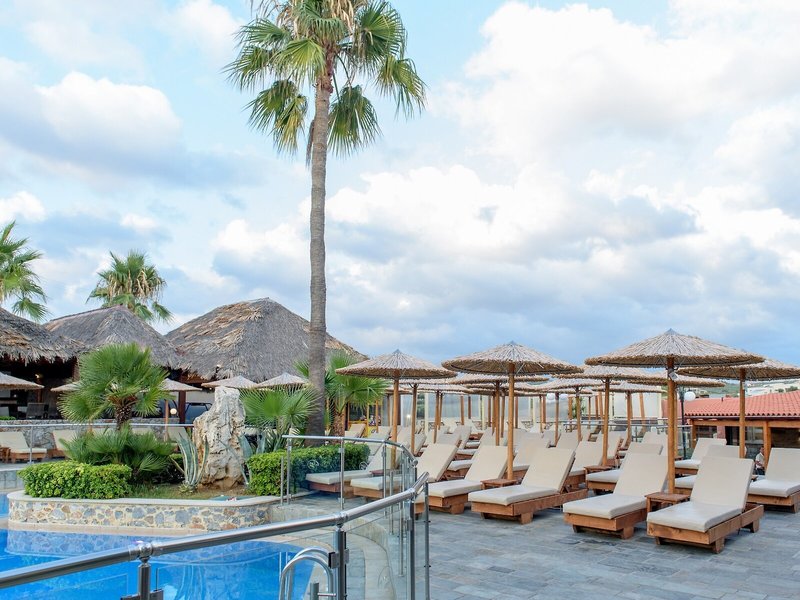 Lage & Umgebung Das Clubresort liegt in der Nähe von Agia Marina, es ist ungefähr 7 km von der Altstadt Chanias und etwa 20 km vom Hafen in Souda entfernt. Es steht auf einem Hügel, nur rund 150 m vom Meer entfernt, ebenso weit ist es zum Busbahnhof und zum Dorfzentrum mit seinen zahlreichen Einrichtungen. Agia Marina ist bekannt für seine wunderschöne Naturlandschaft sowie seine zahlreichen Unterhaltungsmöglichkeiten und Restaurants. Nach nur rund 2 km erreichen die Gäste zudem diverse Geschäfte, Bars und Nachtclubs. Zur berühmten archäologischen Ausgrabungsstätte in Knossos sind es ungefähr 140 km, und der Souda Flughafen ist nach etwa 28 km zu erreichen.