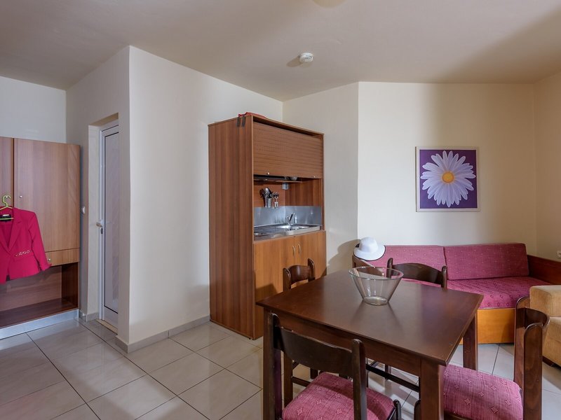 Vaše ubytovanie: Klimatizácia a individuálne ovládané kúrenie zabezpečujú príjemnú vnútornú klímu v izbách. Hostia môžu relaxovať a vychutnávať si výhľad na more na balkóne alebo súkromnej terase väčšiny izieb. Izby sú vybavené posteľou queen a rozkladacou pohovkou. K dispozícii sú samostatné spálne. Prístelky je možné vyžiadať. K dispozícii je aj trezor a minibar. Kuchynka je vybavená chladničkou, minichladničkou a príslušenstvom na prípravu čaju/kávy. Pre väčšie pohodlie hostí je k dispozícii súprava na žehlenie. Okrem toho je tu telefón s priamou voľbou, TV so satelitným/káblovým príjmom, rádio a WiFi. V kúpeľni so sprchovacím kútom a vaňou máte k dispozícii sušič vlasov a telefón. Pre väčšie pohodlie sú v kúpeľniach toaletné potreby a výber uterákov. Ubytovanie ponúka rodinné, nefajčiarske a fajčiarske izby.