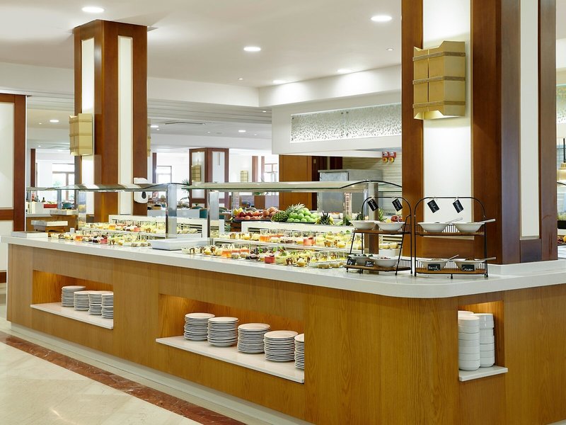 - Hlavná reštaurácia Medzinárodná Hlavná reštaurácia: Kuchyňa: medzinárodná, bezlepkové jedlá: zadarmo, na požiadanie, bezlaktózové jedlá: zadarmo, na požiadanie, ľahké jedlá: zadarmo, sezónne jedlá: zadarmo, vegetariánske jedlá: zadarmo, vegánske jedlá, bufet, show cooking, v cene all inclusive, máj - október, 7:30 - 10:30, 12:30 - 14:30 a 18:30 - 21:30, klimatizovaná, s terasou, k dispozícii je detská stolička, vyžaduje sa elegantný neformálny dress code.