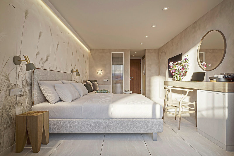 - 21-25 qm, Doppel, Hauptgebäude, Meerblick, renoviert (2026), 1 Bad, Dusche, WC, Haartrockner, Klimaanlage, Safe, 1 TV (Sat-TV, Flachbildschirm), Kaffee/Tee, Kühlschrank, Balkon (möbliert)