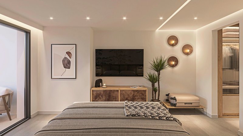 - 26-30 qm, Familien, Nebengebäude, Meerblick, renoviert (2025), 1 separates Schlafzimmer, kombinierter Wohn-/Schlafraum, Twinbett (Kingsize), Sofabett, Etagenbett, 1 Bad, Dusche, WC, Haartrockner, Klimaanlage, individuell regulierbar, Safe, 1 TV (Sat-TV, Flachbildschirm), Kaffee/Tee, Kühlschrank, Balkon oder Terrasse (möbliert)