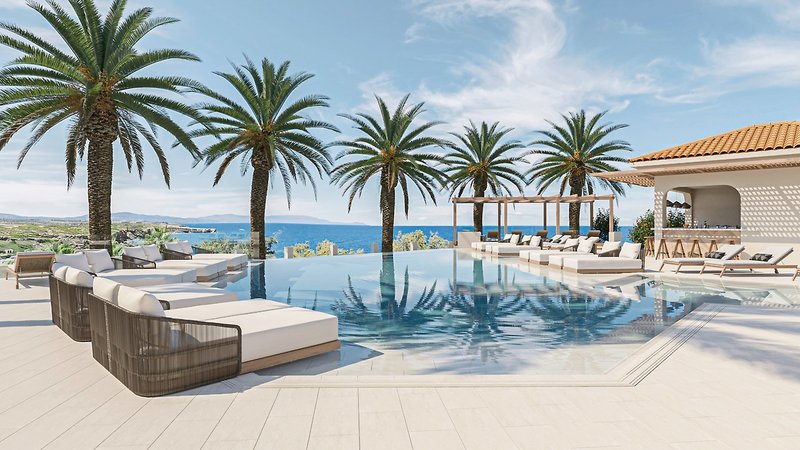 - 3 Pools: Salzwasser, Sonnenschirme, Liegen, Badetuch