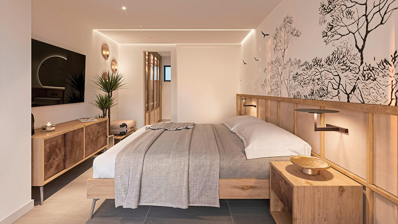 - 26-30 qm, Familien, Nebengebäude, Gartenblick, renoviert (2025), 1 separates Schlafzimmer, kombinierter Wohn-/Schlafraum, Twinbett (Kingsize), Sofabett, Etagenbett, 1 Bad, Dusche, WC, Haartrockner, Klimaanlage, individuell regulierbar, Safe, 1 TV (Sat-TV, Flachbildschirm), Kaffee/Tee, Kühlschrank, Terrasse (möbliert)