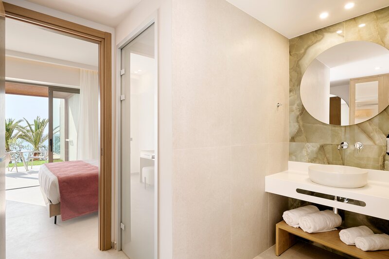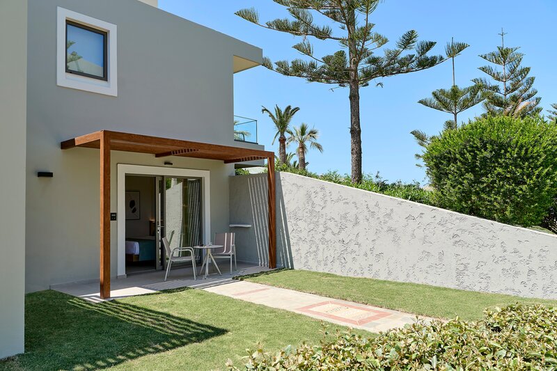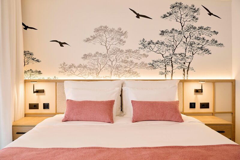 Dvojlôžková izba (cca 23 m²), zrekonštruovaná, klimatizácia, chladnička, telefón, Wi-Fi, 50-palcový TV, trezor. Sprcha, WC, fén. Balkón/terasa, výhľad do záhrady, voliteľný výhľad na more (DZM). Max. 3 dospelí.