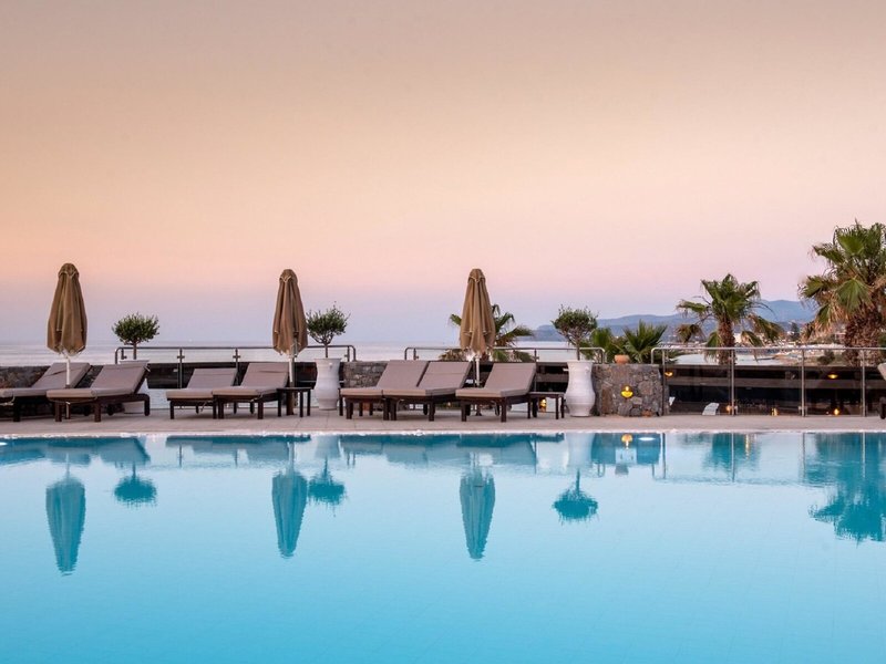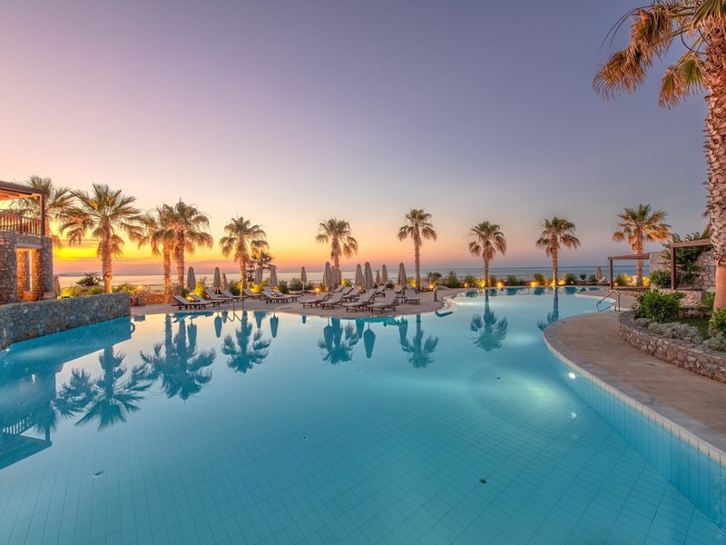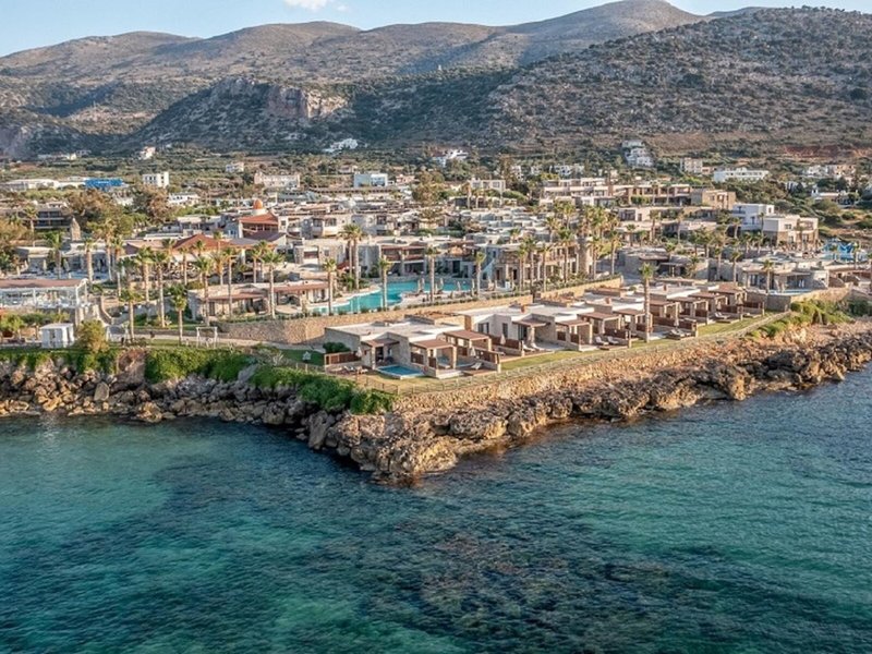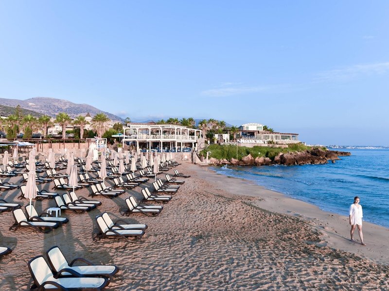 Poloha a okolie Komplex z prírodného kameňa sa nachádza na malom výbežku na jemnej piesočnatej pláži s fascinujúcim výhľadom na Krétske more. Centrum mesta je vzdialené asi 10 minút chôdze. Centrum Heraklionu je vzdialené asi 30 minút.
