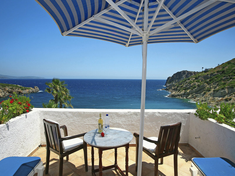 - Bungalow sea view (BUM1), Bungalow, im Hauptgebäude, im Nebengebäude, Meerblick, ca. 25 - 30 m², Gesamtanzahl der Räume in diesem Zimmertyp: 1, Babybett: ohne Gebühr, Klimaanlage: ohne Gebühr, individuell regelbar, Heizung: individuell regelbar, Fußboden: Fliesenboden, Safe: gegen Gebühr, Minibar: gegen Gebühr, Telefon, Fernseher: Sat-TV, Roomservice: gegen Gebühr, Badewanne, WC, Föhn, Balkon oder Terrasse: mit Liegen, mit Sitzgelegenheit
